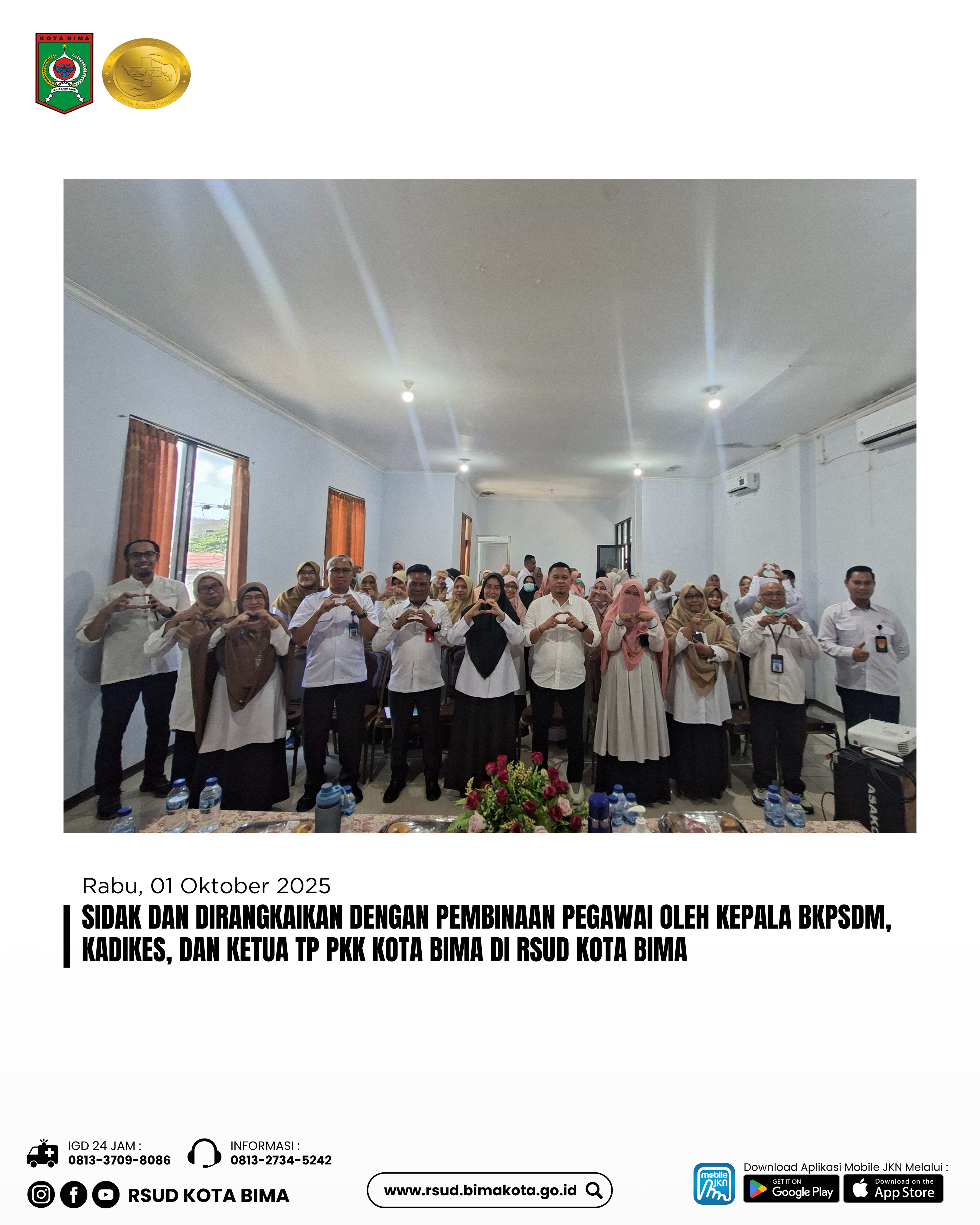 SIDAK dan dirangkaikan dengan Pembinaan Pegawai oleh Kepala BKPSDM, KADIKES, dan Ketua TP PKK Kota Bima di RSUD Kota Bima