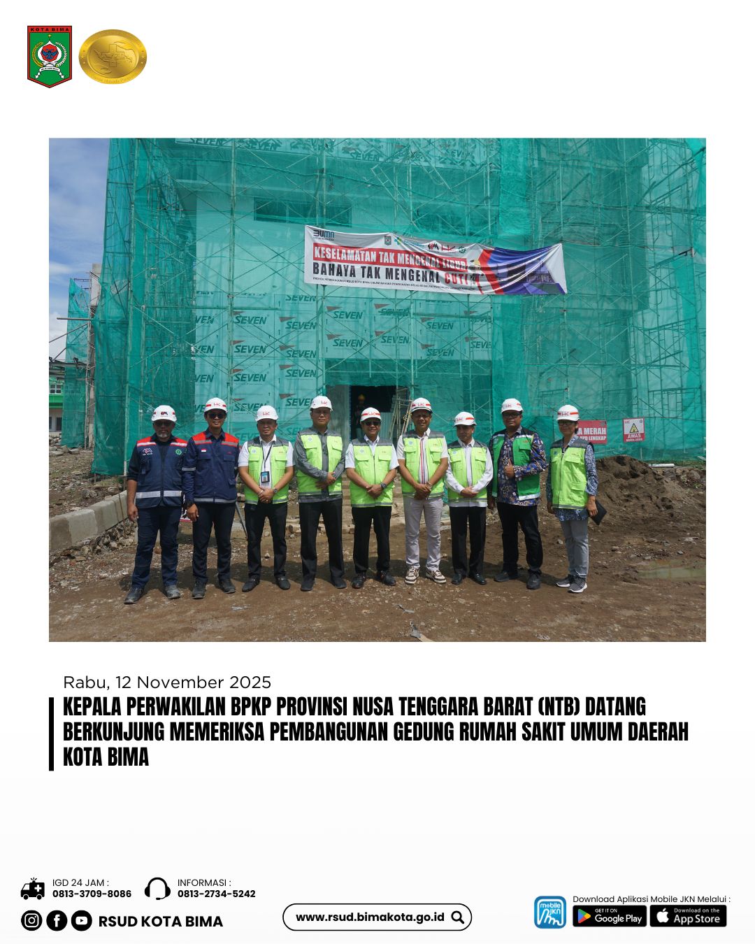 Kepala Perwakilan BPKP Provinsi Nusa Tenggara Barat (NTB) datang berkunjung memeriksa Pembangunan Rumah Sakit Umum Daerah Kota Bima.