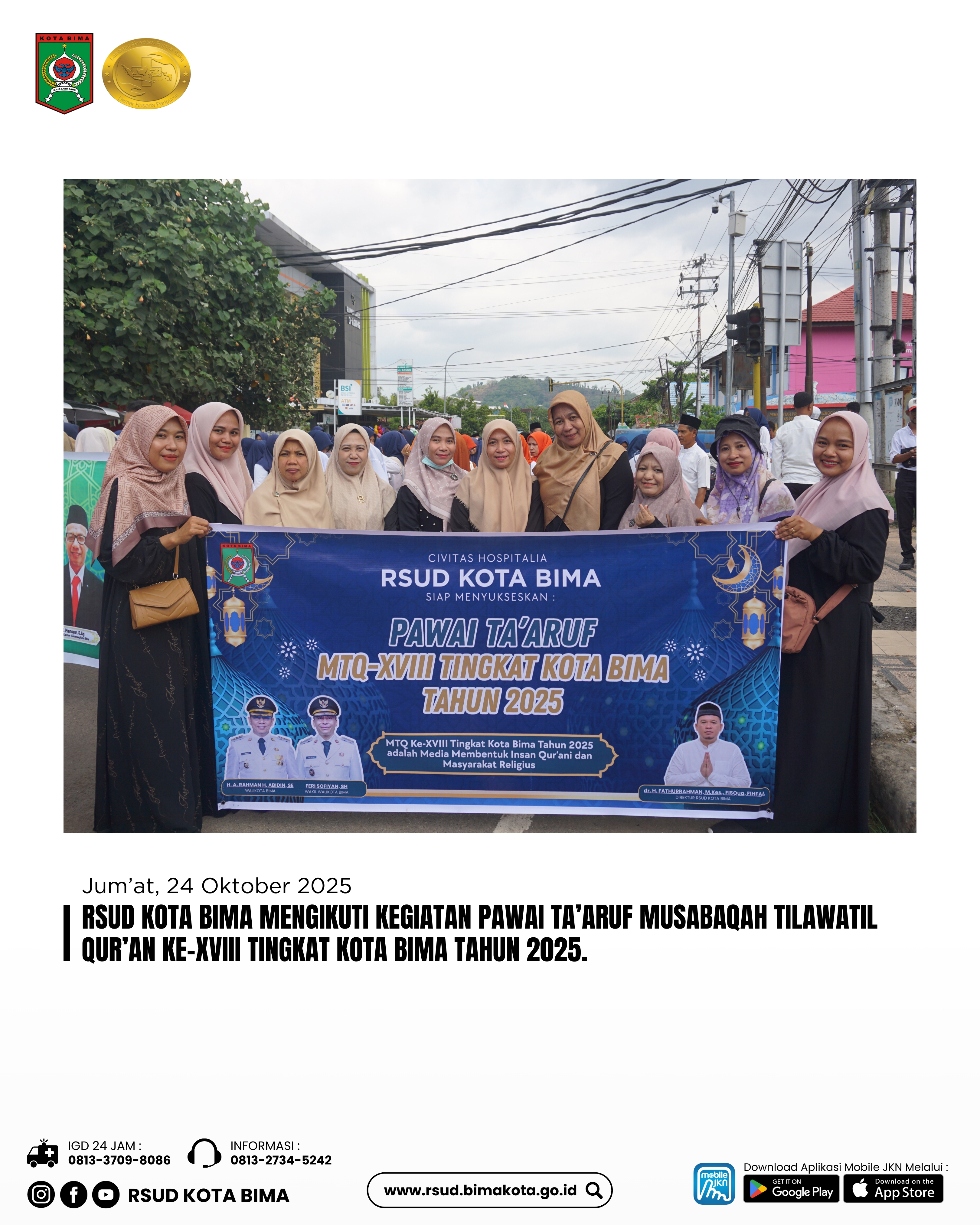 RSUD KOTA BIMA Mengikuti Kegiatan Pawai Ta’aruf Musabaqah Tilawatil Qur’an Ke-Xviii Tingkat Kota Bima Tahun 2025.