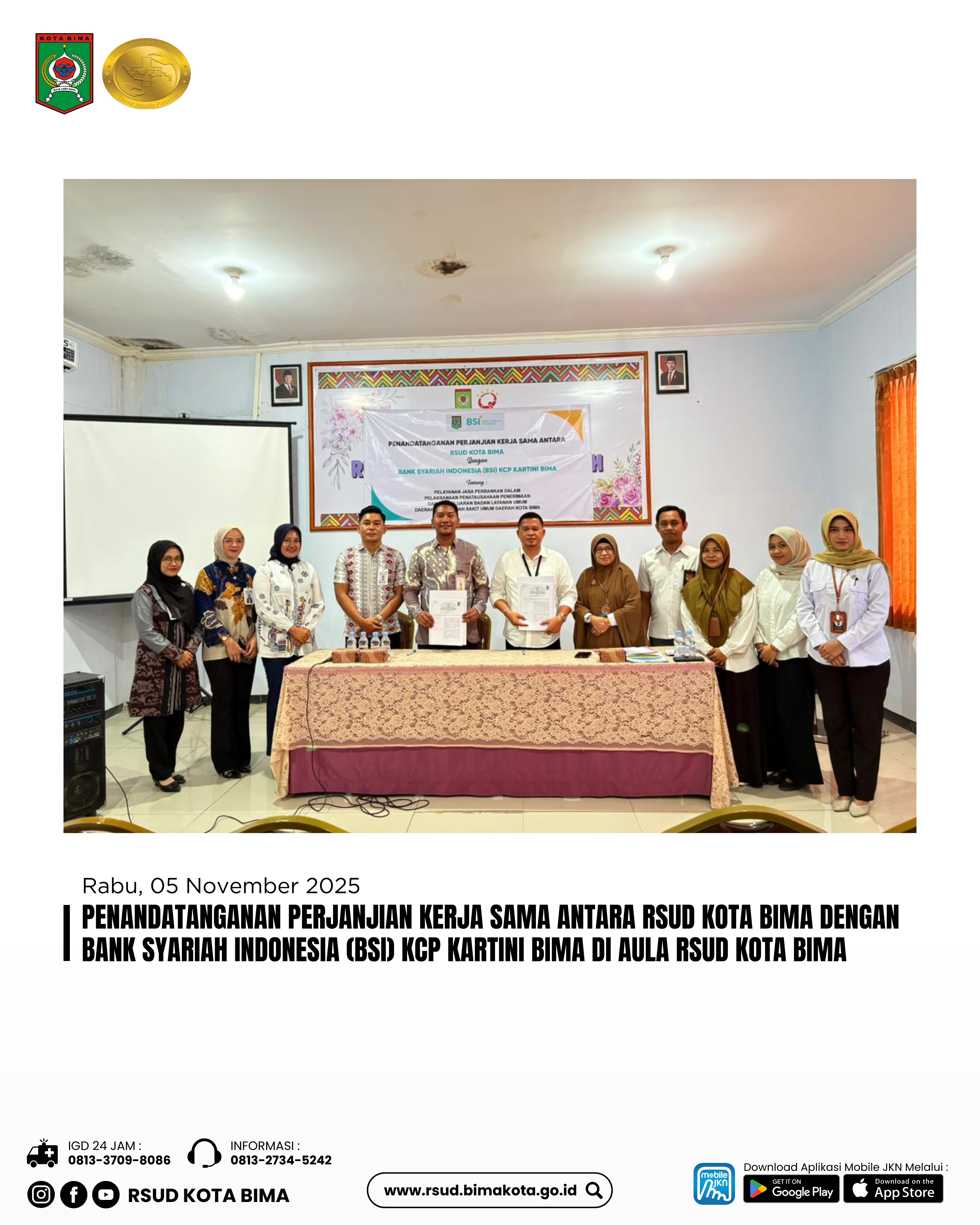 Penandatanganan Perjanjian Kerja Sama Antara RSUD Kota Bima Dengan Bank Syariah Indonesia (BSI) KCP Kartini Bima